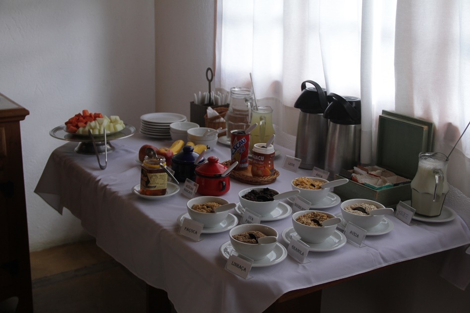 No café da manhã, eles fazem quase tudo por lá e o que eles não fazem na cozinha deles, eles compram de produtores locais (isso é algo que eu adoro em Santo Antônio do Pinhal, pois um produtor ajuda o outro, sempre mantendo a qualidade, sempre mantendo a sazonalidade). Alguns pães deliciosos, o iogurte, alguns queijos, etc. Se quiser começar o dia tomando um suco de laranja fresco e espremido na hora, vai ter. Se quiser comer ovos mexidos, pode pedir também. É tudo tão delicioso na Pousada Vale das Araucárias que dá vontade de ficar lá a semana toda, só descansando e curtindo cada momento.