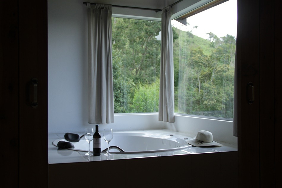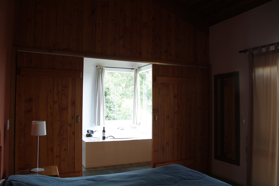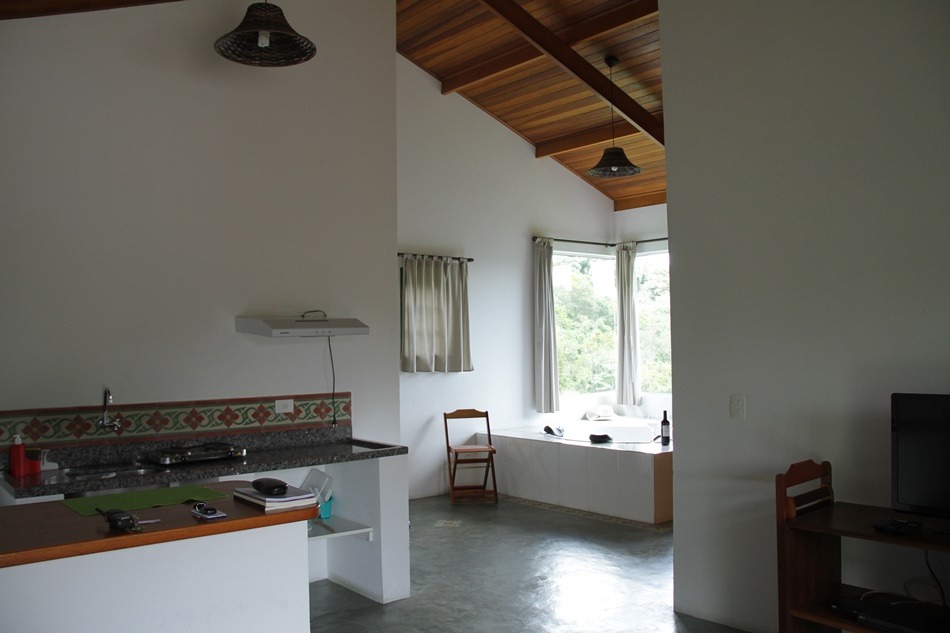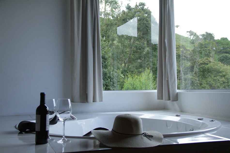 É aquela pousada perfeita para casais. Silêncio da natureza, canto dos pássaros, frio gostoso da serra e tempo de sobra para se curtir. Os chalés da Pousada Vale das Araucárias são espalhados, não ficam um perto do outro, o que garante mais privacidade ao casal. Todos possuem vista e todos possuem um espaço bacana para a gente aproveitar cada segundo. O Chalé das Cerejeiras, que foi o que ficamos, tinha uma banheira de hidromassagem linda e enorme com uma vista perfeita para a Serra da Mantiqueira. Com água potável e mineral, a gente ficou lá, tomando banho de espuma quase que o final de semana todo. Era só beber vinho, petiscar alguma coisa, ler um livro e ficar agarrado. Para mim, essa é uma das definições de final de semana perfeito.