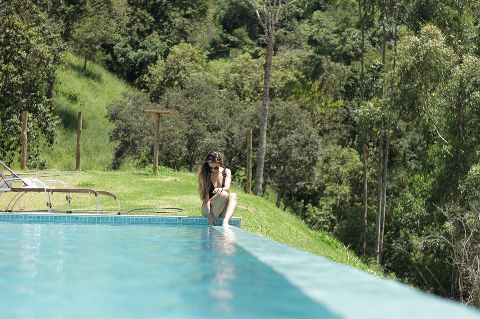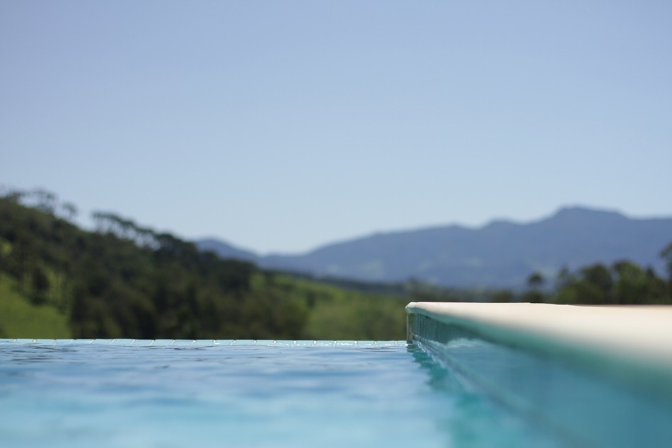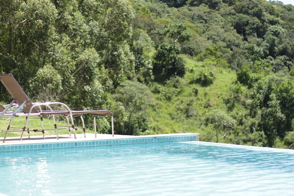 Na parte externa da Pousada Vale das Araucárias, a gente pode curtir um deck para apreciar a vista, ou simplesmente passar o dia (e quem sabe a noite) todo na piscina de borda infinita que eles construíram lá, bem de cara com a Serra da Mantiqueira. A piscina é climatizada e além disso, nos dias de sol, ela recebe o calor solar praticamente o dia todo, por conta do local onde foi construída. Tem uma pequena cascata para fazer uma massagem leve as nossas costas, tem espreguiçadeiras e quem quiser levar sua bebida, pode. Ficar ali escutando o barulho da água caindo, misturado com os sons que a natureza nos proporciona, é demais. Os dias geralmente são mais quentes que as noites na serra, e sempre tem sol. Por isso, pode ficar tranquilo que vai dar super para aproveitar essa piscina.