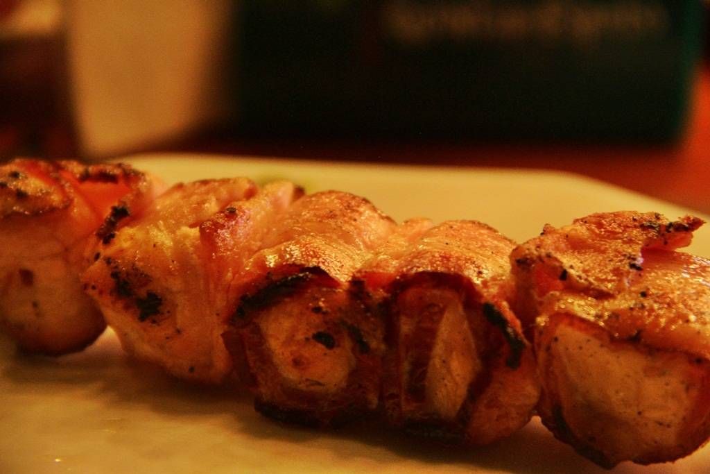 Existem várias opções para escolhermos. Os espetinhos mais tradicionais (como os de carne, frango, pão de alho, kafta, etc) entram na seleção do Quintal. Onde são servidos o tempo todo e são os mais fácies de pedir. Outros como medalhões, legumes, alguns vegetarianos e doces, são servidos a partir do nosso pedido. Ou seja, tem espetinho para todo mundo, para todos os gostos.