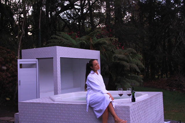 Fiquei hospedada em uma das cabanas, que são feita de madeira. O que dá um ar mais quentinho, mesmo nos dias mais frios. Mas dei uma espiada nos chalés e nos apartamentos. Os chalés são de babar, com uma banheira linda com vista para a mata. Mas, curti minha cabana, mesmo ela não tendo banheira. Sabe por quê? Deu para aproveitar a jacuzzi do hotel que fica ao ar livre, do lado da sauna úmida. Delícia.