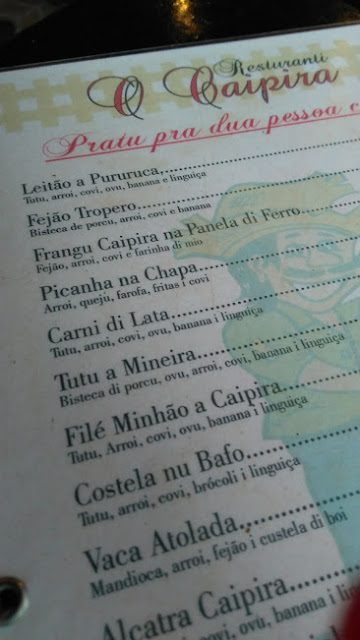 O cardápio é cheio de pratos super típicos. Leitão a Pururuca, Feijão Tropeiro, Carne de Lata, Vaca Atolada, Tutu a Mineira, Frango Caipira feito na panela de ferro, Costela no bafo… etc. É sensacional! De entrada tem torresmo, mandioca, batata frita e muito mais. Tipo sensacional qualquer coisa que você provar. O torresmo estava delicioso.