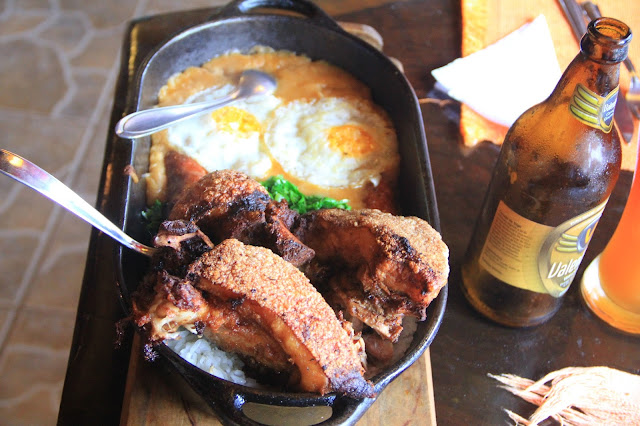 O cardápio é cheio de pratos super típicos. Leitão a Pururuca, Feijão Tropeiro, Carne de Lata, Vaca Atolada, Tutu a Mineira, Frango Caipira feito na panela de ferro, Costela no bafo… etc. É sensacional! De entrada tem torresmo, mandioca, batata frita e muito mais. Tipo sensacional qualquer coisa que você provar. O torresmo estava delicioso.