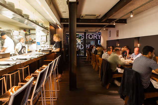 A cozinha é toda de vidro, sendo possível ver todo mundo trabalhando. Tem pouco mais de 12 mesas dentro, mais algumas grandes na parte de fora e na parte de cima tem um bar todo ao estilo antigo (tipo americano na época da lei seca) onde podemos beber drinks e comer entradinhas enquanto esperamos nossa mesa.