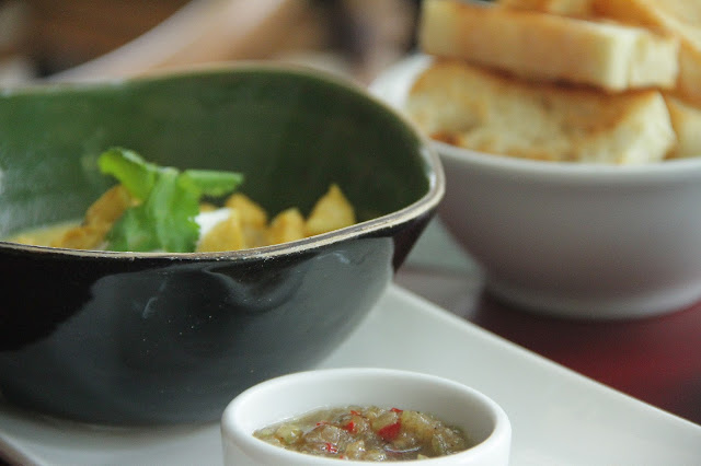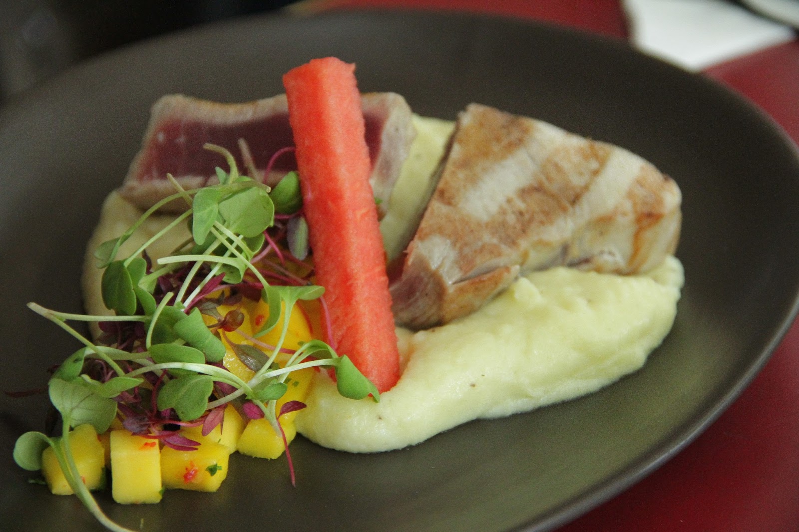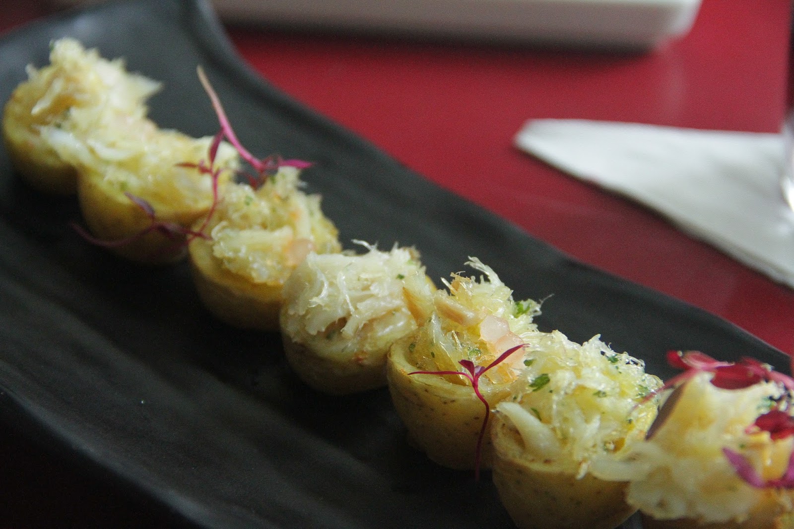 De entrada experimentei a Bruschetta Desconstruída de Frango Garam Masala (meio apimentadinha, bem saborosa), as Barquetas de Brandada de Bacalhau com Pérolas Picantes (dos deuses, estava no ponto certo, sabor perfeito) e a Caçarola e Polvo Pellegrino com Pão Defumado (também estava uma delícia, o polvo macio e o molho super combinando com todo o resto). Estava adorando tudo e só estava nas entradas. Estava esperando ansiosamento pelo meu prato principal escolhido.