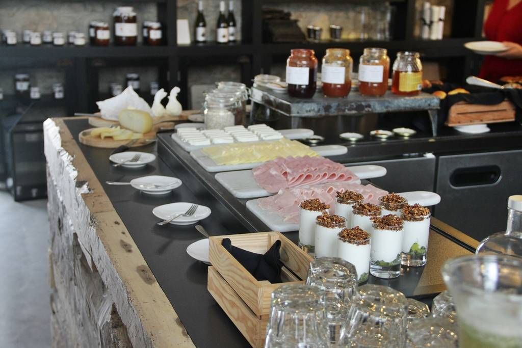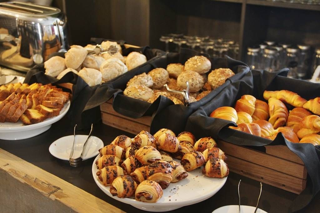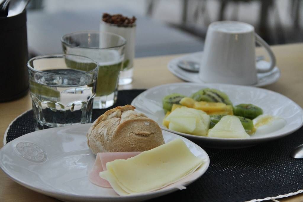 Com relação ao que hotel oferece aos hóspedes, eles possuem um restaurante onde também é servido o café da manhã. Eu tomei café os dois dias olhando para a área externa. Mesas de madeira rústica com cimento queimado e detalhes em preto. Super moderno, como eu já disse. Durante o verão o rooftop ferve e é possível beber drinks lá em cima, com a vista incrível da Universidade de um lado e do Rio do outro lado. Maravilhoso. A área externa tem jardim, cadeiras e espreguiçadeiras para curtirmos o sol e também é possível comer e beber por ali.