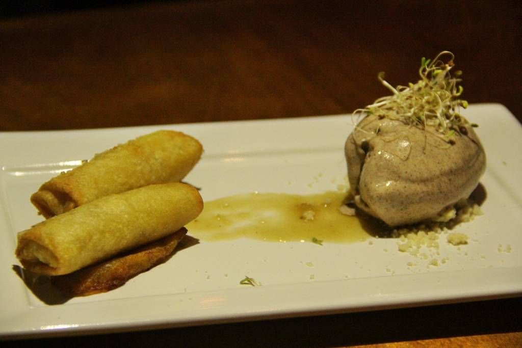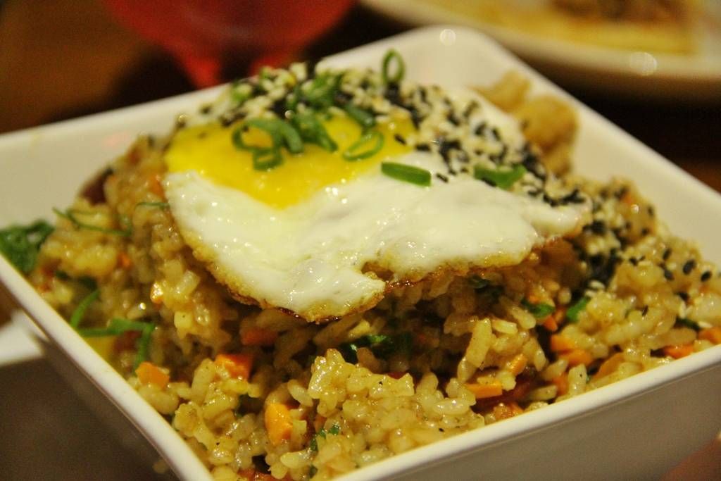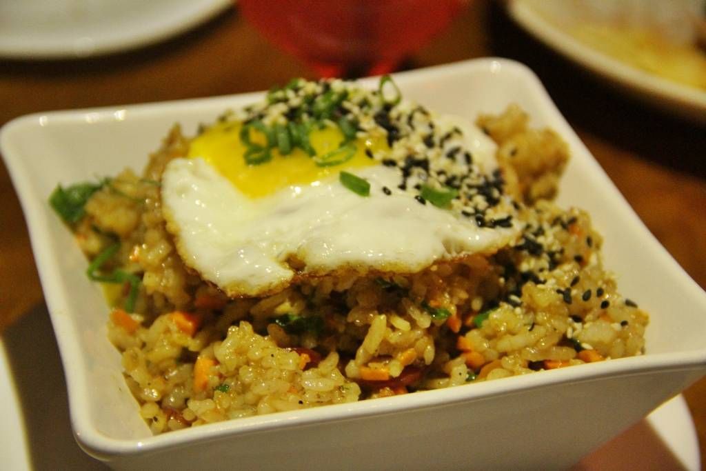 Depois provamos um prato chamado Linguiça artesanal e Camarão. Juro que eu fiquei com cara de “oi?!” quando vi. O Sr. Alexandre quis pedir, então arriscamos. Não sei qual é a mágica que eles fazem para chegar nesse resultado, mas acreditem… Estava fantástico esse prato. Camarão macio, o sabor da linguiça super sutil e todos os outros ingredientes (arroz wok com linguiça artesanal levemente adocicada, camarão gengibre e ovo frito por cima) estavam dançando na nossa boca. Que delícia provar tudo isso e descobrir os sabores da Ásia. Fiquei encantada e mal sabia que ainda faltavam pratos para provar.
