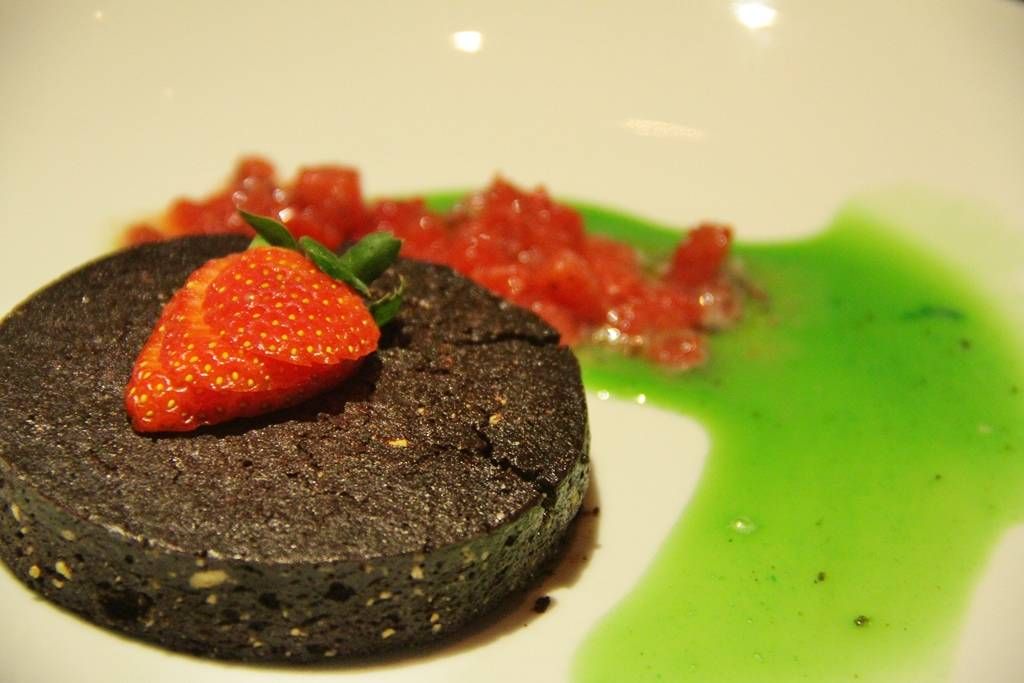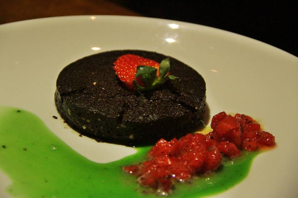 Ainda tinham as sobremesas, né?! Pedimos duas. Um rolinho tipo o primavera com recheio de doce de leite e com uma bola de sorvete de canela. Sim, sorvete de canela! Vocês têm ideia que do é um sorvete de canela? Juro, quando for ai Tian, peça essa sobremesa. Não vai se arrepender. É dos deuses essa combinação de doce de leite com canela. Pelo amor… E também pedimos um bolinho de chocolate com morango e calda de menta. Pois é, essas combinações maravilhosas. Estava perfeito!
