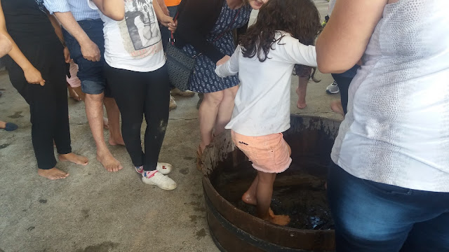 Depois de comer tudo isso, eu fui caminhar pela feira. Teve shows de danças regionais, galera cantando música de interior e também colocaram dois barris gigantes cheios de uva para todo mundo que quisesse, sentir como se fazia antigamente, amassando as uvas com seus próprios pés. Eu não arrisquei pisar, mas deve ser algo bem divertido de se fazer.